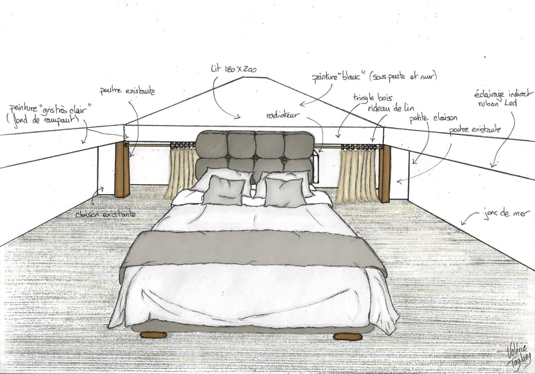Je mets un peu de mon âme dans chaque projet en réalisant les visuels graphiques à la main. Cette conception épouse mon idée d'une approche plus personnelle, plus humaine des projets qui me lient à mes clients (même si la 3D demeure un outil très précieux!).